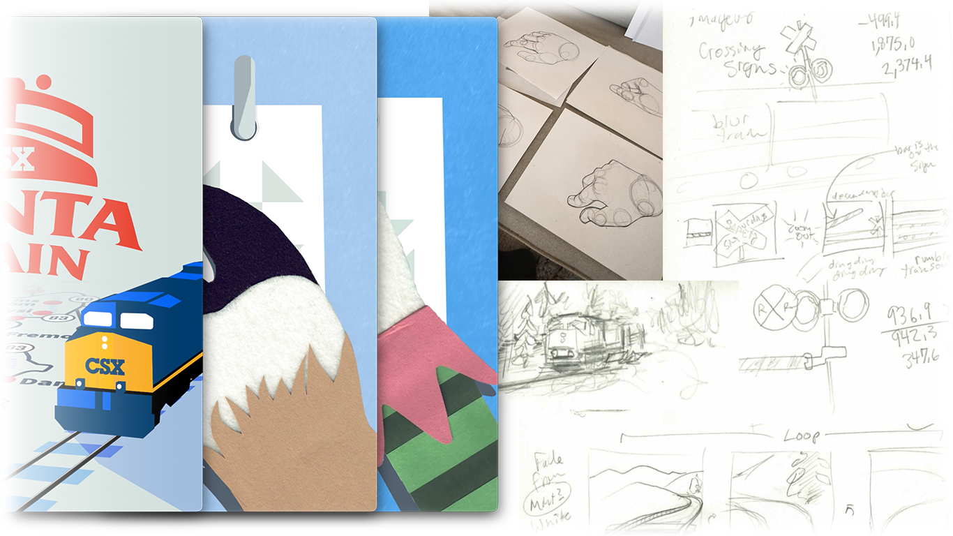 The CSX and Santa Train logos and icons as well as a campaign style guide were provided. Excluding these resources and any media composited in final posts (video footage and audio), the visual creative work and animation on delivered segments are solely my work as described below.